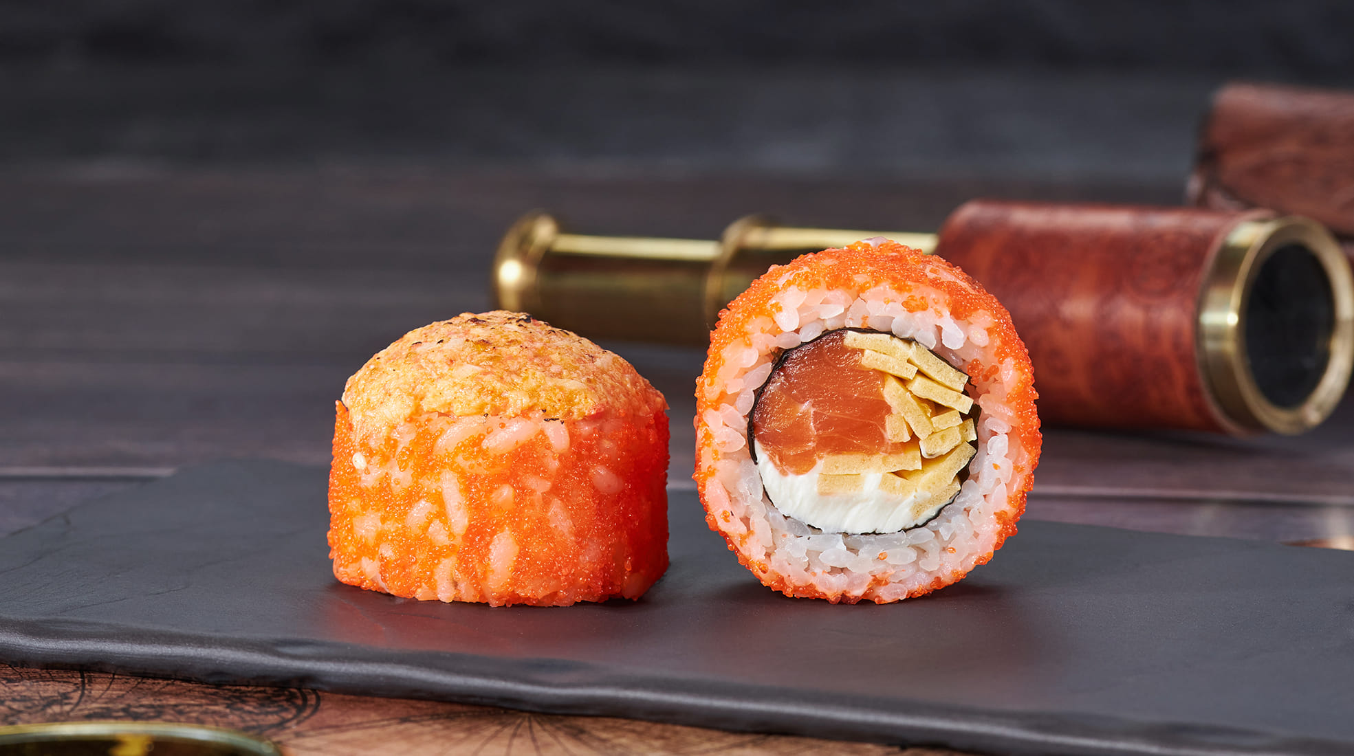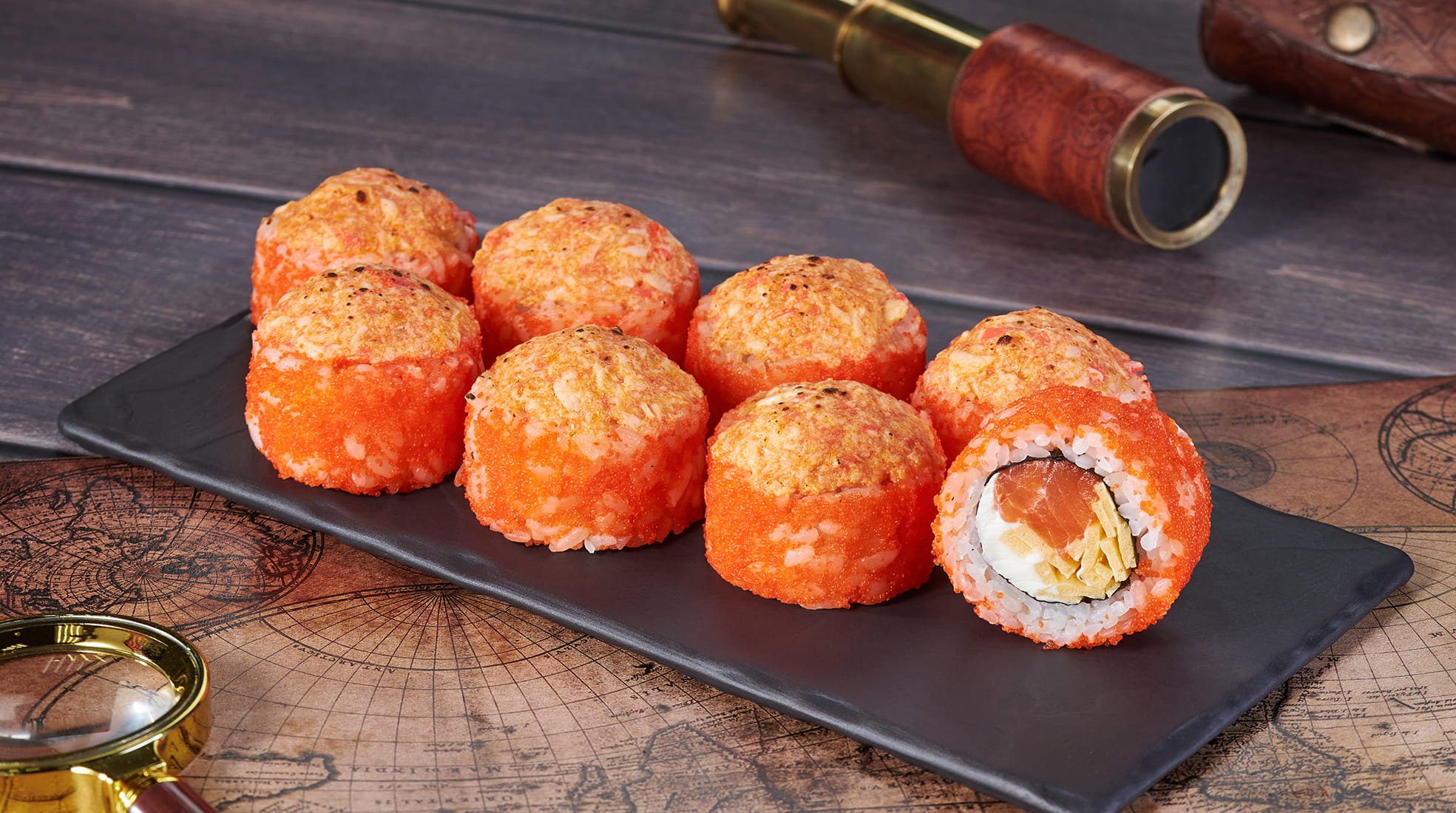 Состав: Лосось, крем чиз, омлет тамаго, икра масаго, соус крем-краб , рис , нори. Не забудьте заказать имбирь, васаби и соевый соус. Они не входят в стоимость заказа. *Внешний вид блюда может отличаться от фото на сайте.